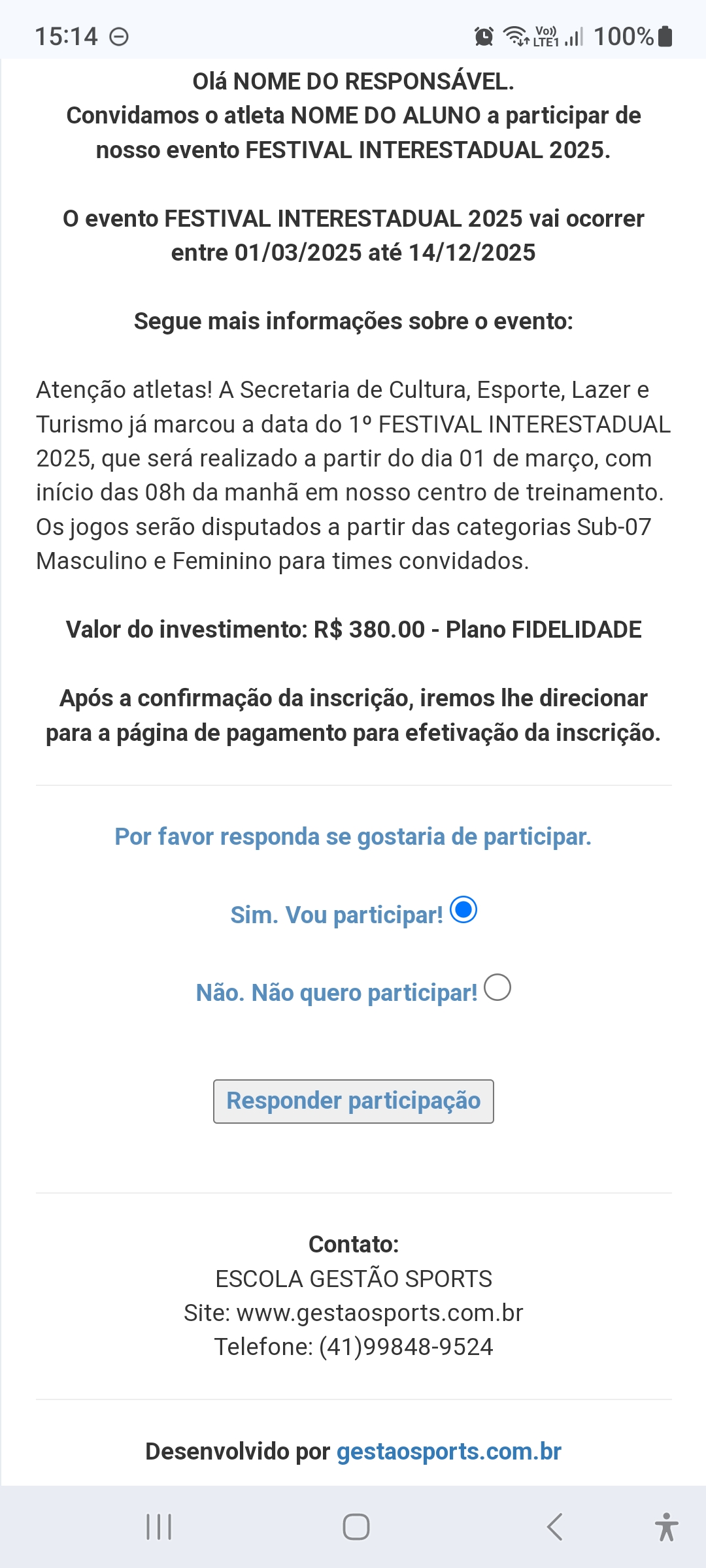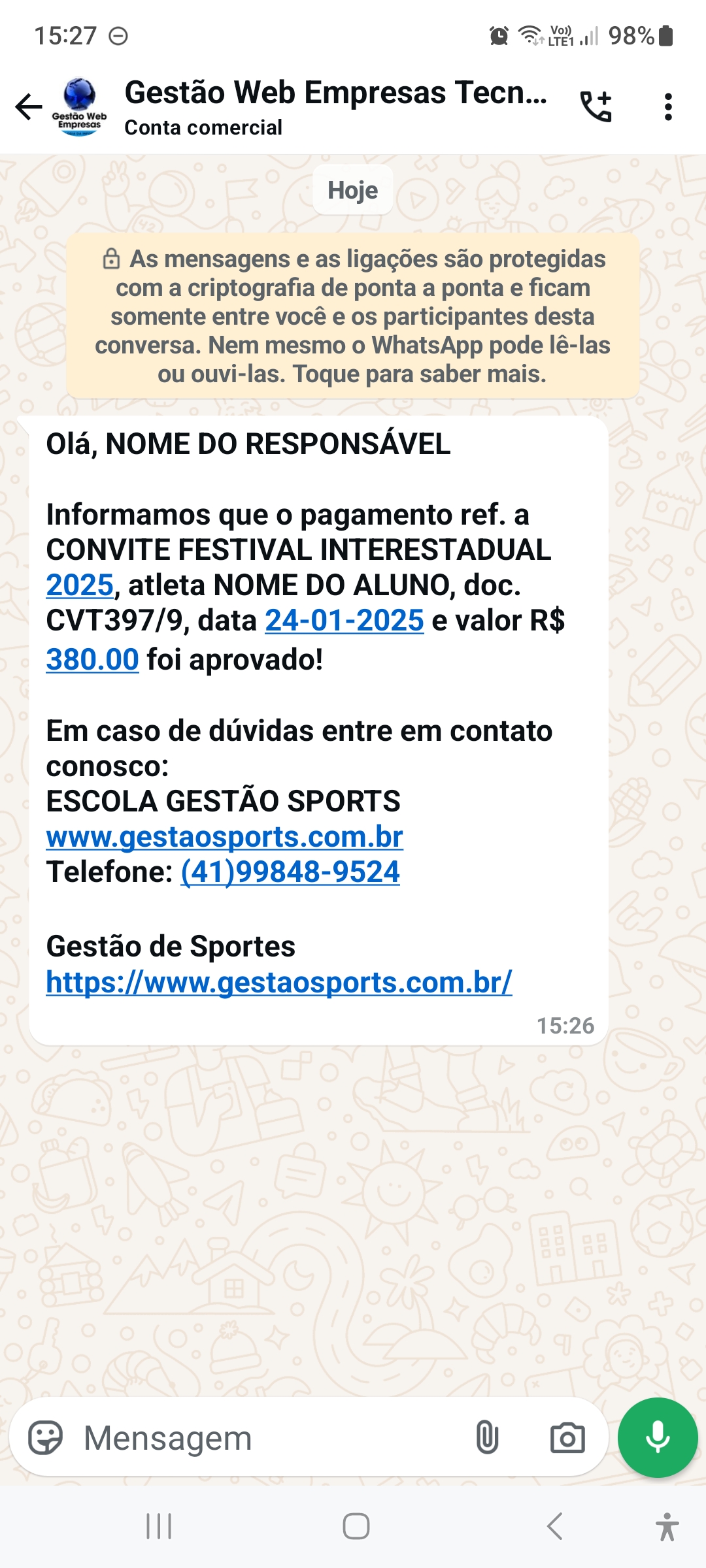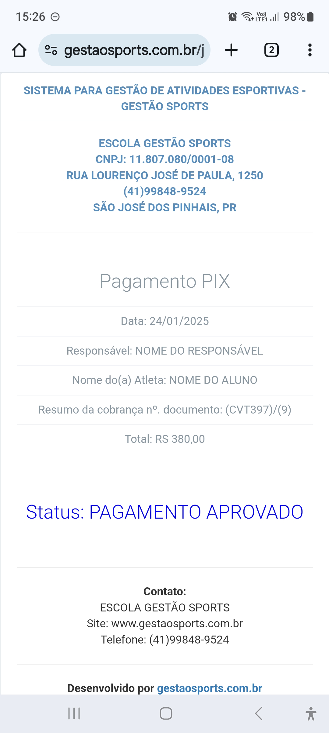- Receba diretamente na sua conta as mensalidades, inscrições, taxas de jogos e outras cobranças pagos pelo WebApp.