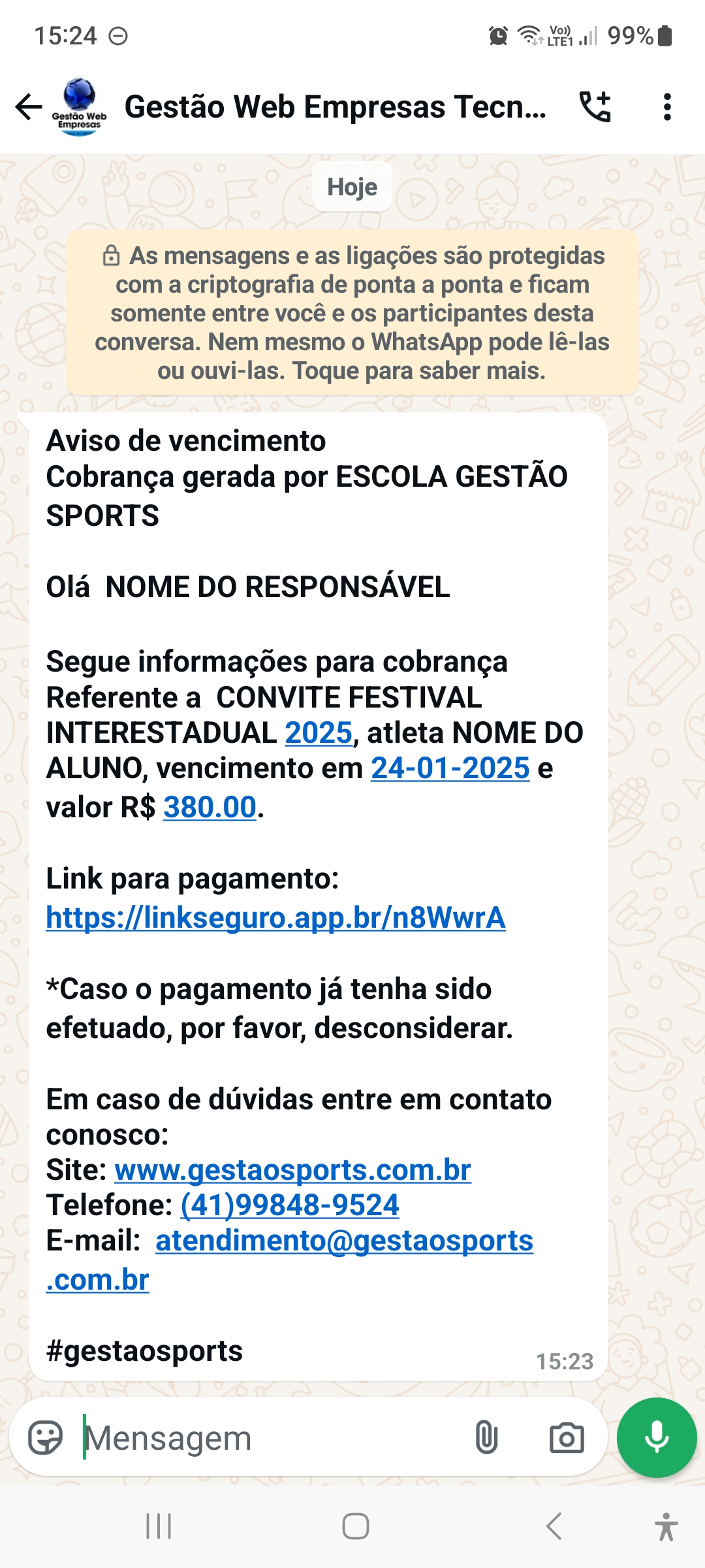 As mensagens geradas pelo nosso App utilizando o WhatsApp para o envio de convites, convocações e mensalidades serão sempre gratuitas.